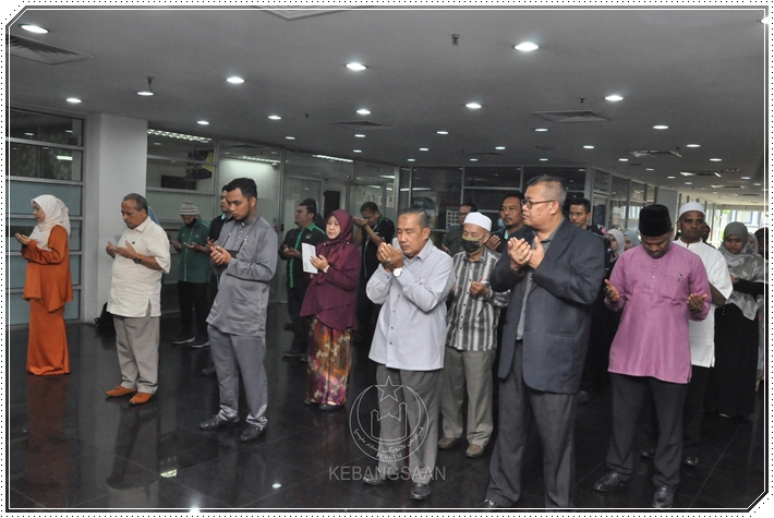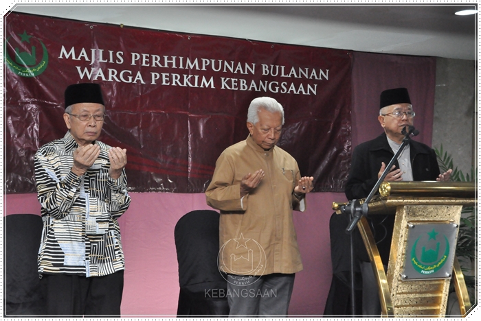 Warga PERKIM Kebangsaan menadah tangan ketika doa dibacakan.