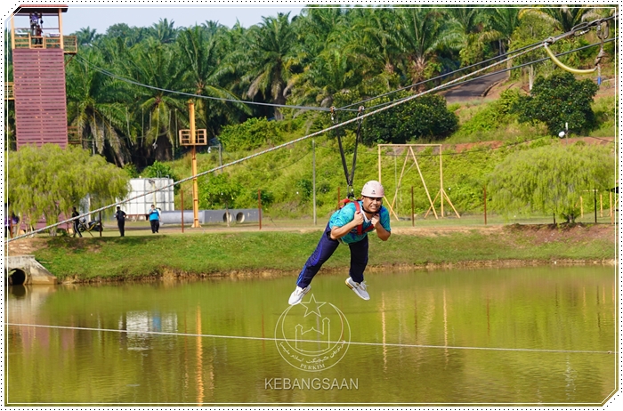 Peserta kemudiannya menyertai pelbagai aktiviti kecergasan dan kecerdasan, termasuk flying fox atau zipline sejauh 700 meter yang menjadi simbol keberanian dan keazaman diri.