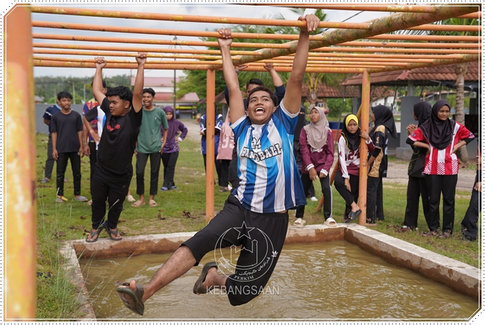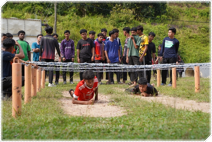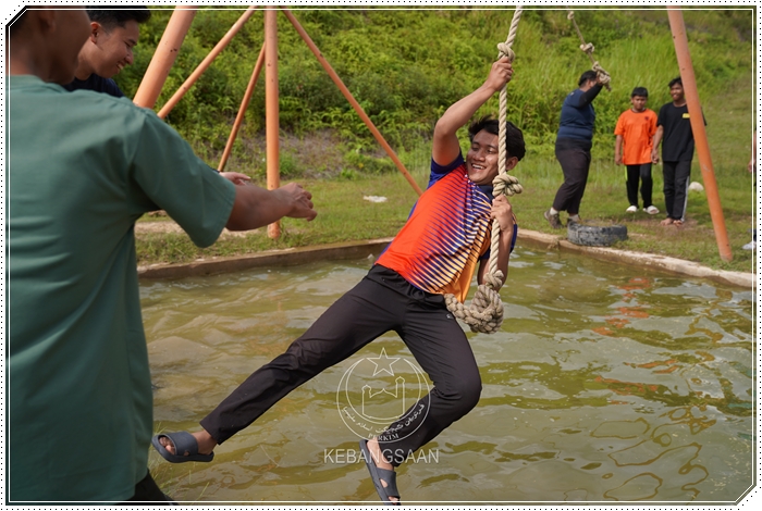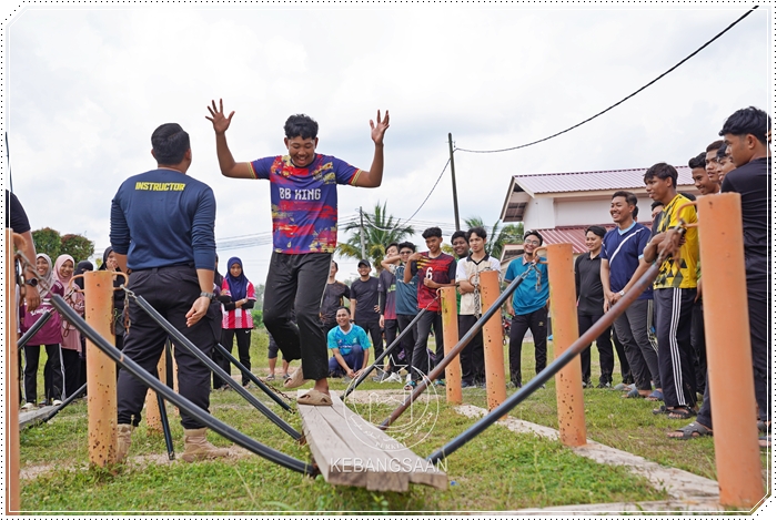 Peserta belia menyertai aktiviti outdoor yang mencabar ketahanan fizikal dan mental.
