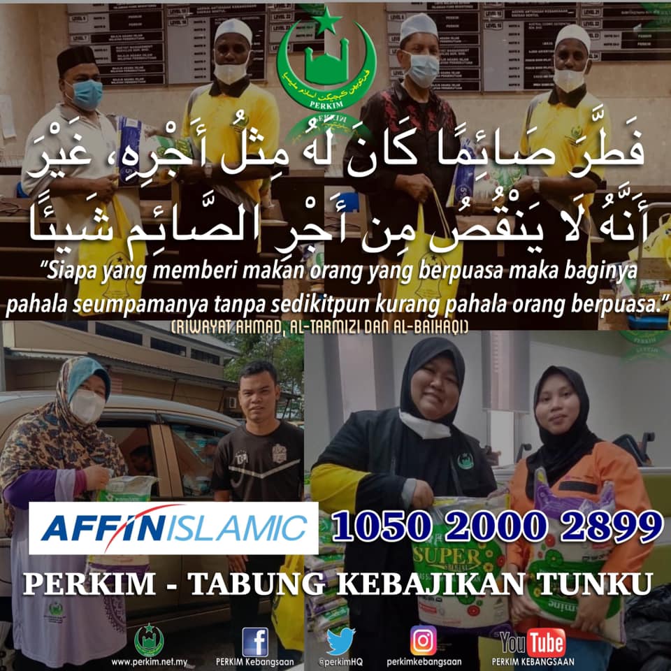 Terus menyumbang ke akaun AFFIN BANK (PERKIM – Tabung Kebajikan Tunku : 1050 2000 2899)