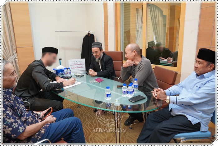 Selesai majlis pengislaman, Carlitos bersama saksinya, Haji Nusral dan Dr Ridhuan Tee melengkapkan maklumat peribadi dan menandatangani borang pengislaman.