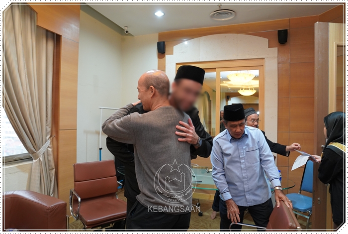 Carlitos dipeluk oleh Dato’ Razali sambil membisikkan ucapan tahniah dan selamat datang ke agama Islam.