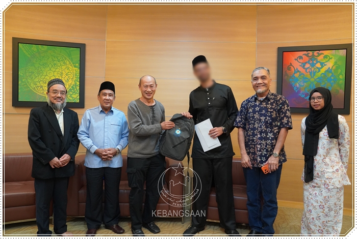 Dr Ridhuan Tee menyampaikan beg pengislaman MAIS kepada Carlitos sambil mengambil gambar kenangan.