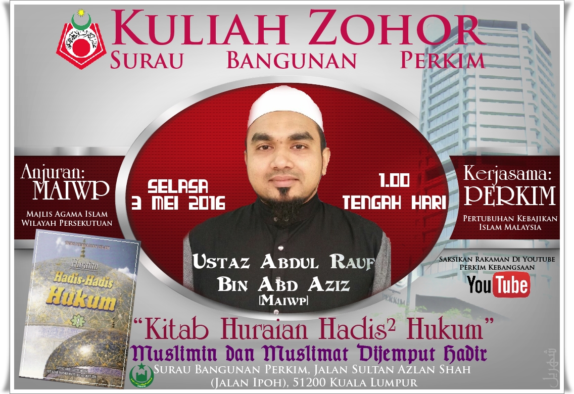 Kitab Huraian Hadis-Hadis Hukum : “Bahaya Mengumpat (Siri 1)” Penceramah: Ustaz Abdul Rauf Abd Aziz (MAIWP) Anjuran: Majlis Agama Islam…