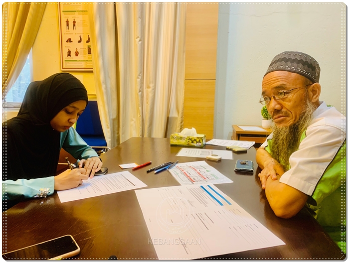 Shazrin melengkapkan butir-butir diri di dalam borang pengislaman MAIS.