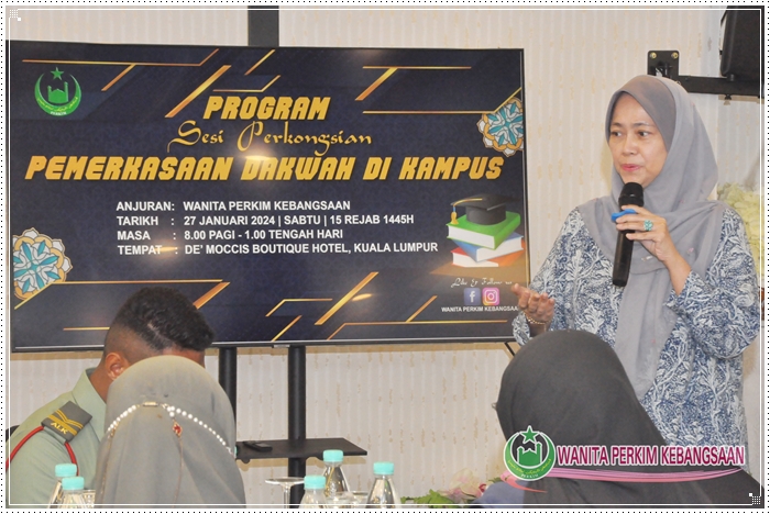Sehubungan dengan itu, Wanita Pertubuhan Kebajikan Islam Malaysia (PERKIM) Kebangsaan telah menganjurkan Program Sesi Perkongsian Pemerkasaan Dakwah Di Kampus bertempat di Hotel De Moccis Boutique, dekat sini pada pagi Sabtu.