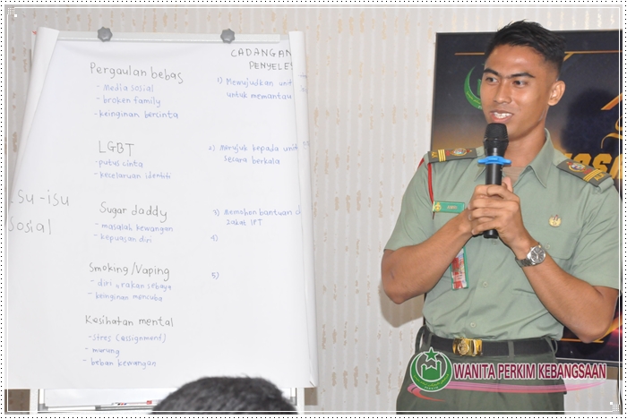 Antara isu dan permasalahan yang dibentangkan oleh kumpulan empat ialah pergaulan bebas, LGBT, sugar daddy, merokok dan kesihatan mental manakala pembentangan kumpulan tiga berkenaan khalwat, seks bebas, pengabaian amalan fardu, masalah kewangan, sugar baby dan pergaulan bebas.
