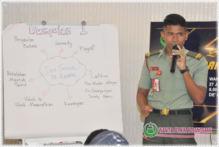 Mahasiswa UPNM, Muhammad Solihin Mohd Zaini membentangkan isu semasa di kampus.