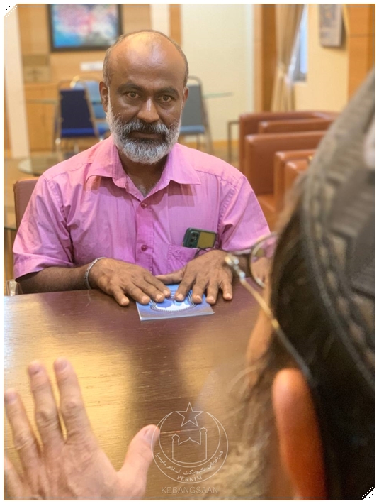 KUALA LUMPUR, 19 JUN 2023 – Hidayah seorang penebar roti canai, Anwar Raja selepas melafazkan dua kalimah syahadah di Bilik Hidayah, Ibu Pejabat Pertubuhan Kebajikan Islam Malaysia (PERKIM) Kebangsaan, Jalan Sultan Azlan Shah pada pagi Isnin.
