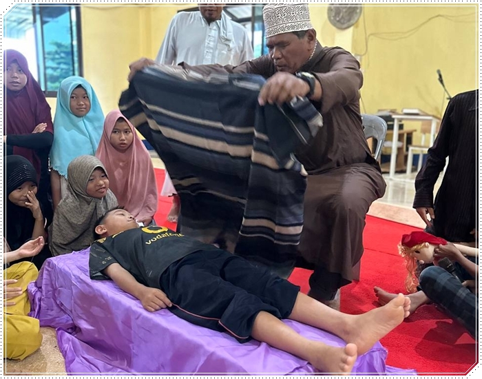Anak-anak As-Siddqin ditunjuk ajar cara mengkafankan mayat.