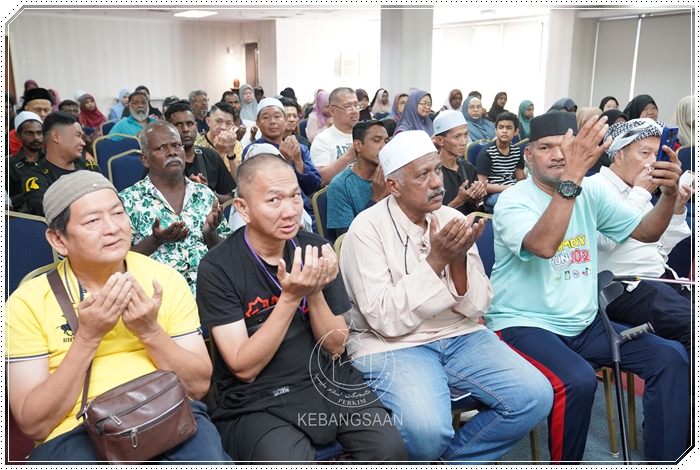 Barisan Eksekutif PERKIM Kebangsaan bersama saudara baharu menadah tangan ketika doa dibacakan.