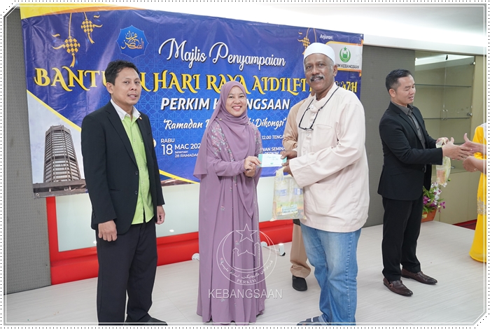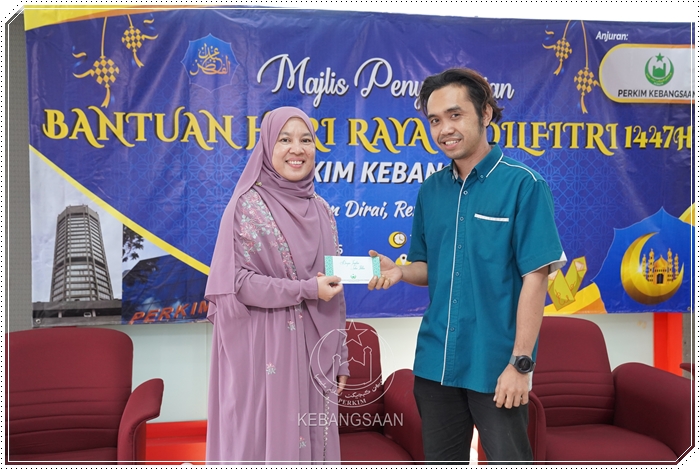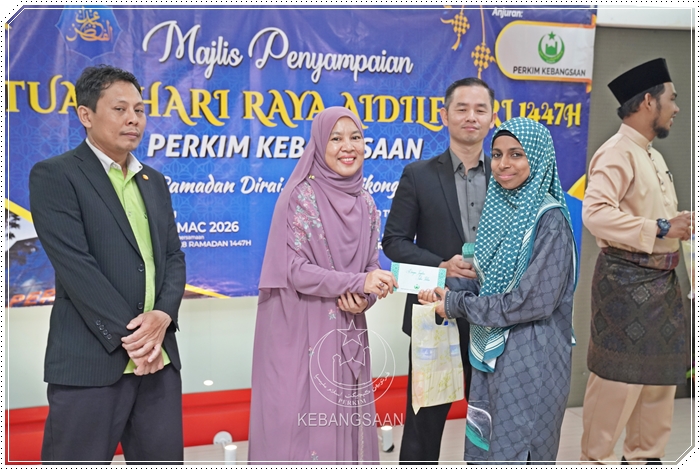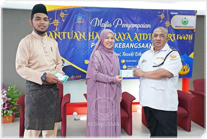 Majlis kemudiannya diserikan dengan penyampaian sumbangan saguhati Hari Raya Aidilfitri 1447H kepada 100 saudara baharu yang disampaikan oleh 𝗣𝗲𝗻𝗴𝗮𝗿𝗮𝗵 𝗣𝗲𝗻𝘁𝗮𝗱𝗯𝗶𝗿𝗮𝗻 𝗣𝗘𝗥𝗞𝗜𝗠 𝗞𝗲𝗯𝗮𝗻𝗴𝘀𝗮𝗮𝗻, 𝗬𝗕𝗵𝗴. 𝗗𝗿. 𝗦𝘂𝗮𝗿𝗶𝘇𝗮 @ 𝗛𝗶𝗱𝗮𝘆𝗮𝗵 𝗠𝘂𝗵𝗮𝗺𝗺𝗮𝗱, diiringi 𝗘𝗸𝘀𝗲𝗸𝘂𝘁𝗶𝗳 𝗣𝗲𝗻𝘁𝗮𝗱𝗯𝗶𝗿𝗮𝗻, 𝗔𝗵𝗺𝗮𝗱 𝗛𝗮𝘀𝗮𝗶𝗱𝗶 𝗔𝗵𝗺𝗮𝗱; 𝗘𝗸𝘀𝗲𝗸𝘂𝘁𝗶𝗳 𝗞𝗲𝘄𝗮𝗻𝗴𝗮𝗻, 𝗠𝗼𝗵𝗱 𝗔𝗶𝘇𝗮𝘁 𝗥𝗼𝘀𝗹𝗶 serta 𝗨𝘀𝘁𝗮𝘇 𝗙𝗮𝗿𝗵𝗮𝗻 𝗧𝗲𝗲.