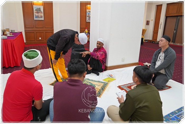 Charles Abdullah membimbing peserta dalam praktikal solat ketika aktiviti latihan dalam kumpulan.