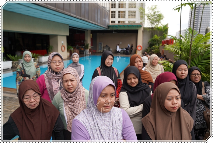 Latihan praktikal wuduk dan mandi wajib yang sempurna turut diadakan di kawasan kolam hotel bagi memberi pengalaman sebenar kepada peserta.