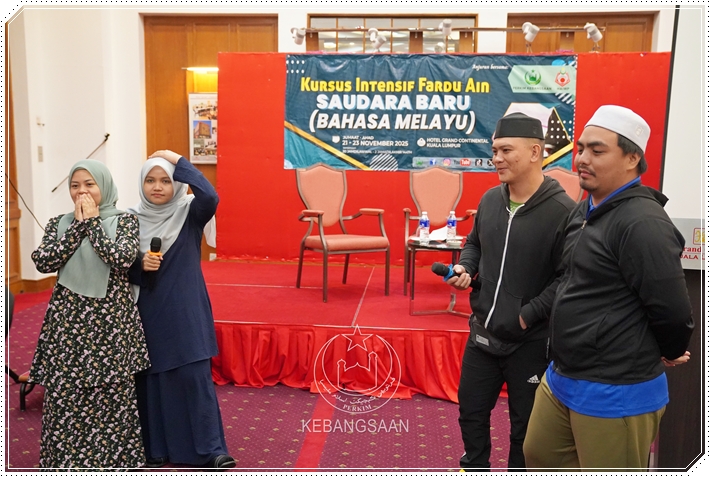KUALA LUMPUR, 23 NOVEMBER 2025 – Usaha memperkasakan kefahaman asas agama dalam kalangan saudara baharu diteruskan secara konsisten melalui penganjuran Kursus Intensif Fardu Ain Saudara Baharu (Bahasa Melayu) selama tiga hari anjuran bersama Pertubuhan Kebajikan Islam Malaysia (PERKIM) Kebangsaan dan Majlis Agama Islam Wilayah Persekutuan (MAIWP).