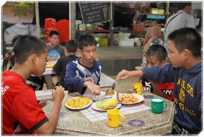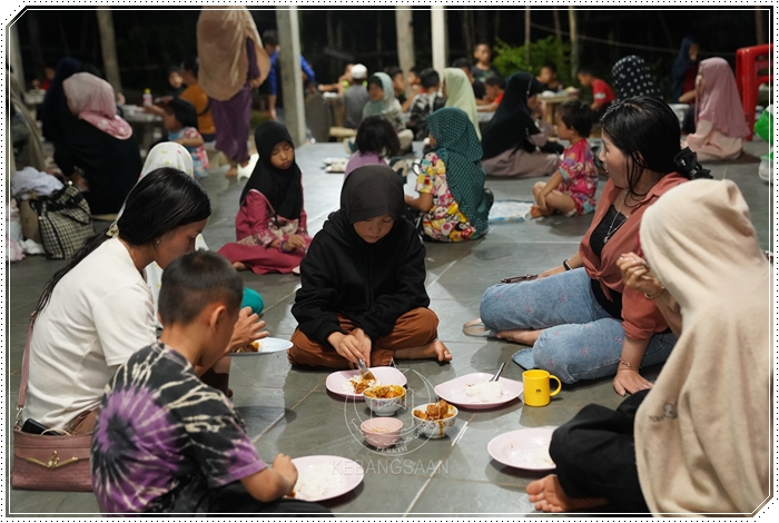 Kegembiraan terpancar pada wajah-wajah ahli keluarga yang dapat makan bersama-sama.