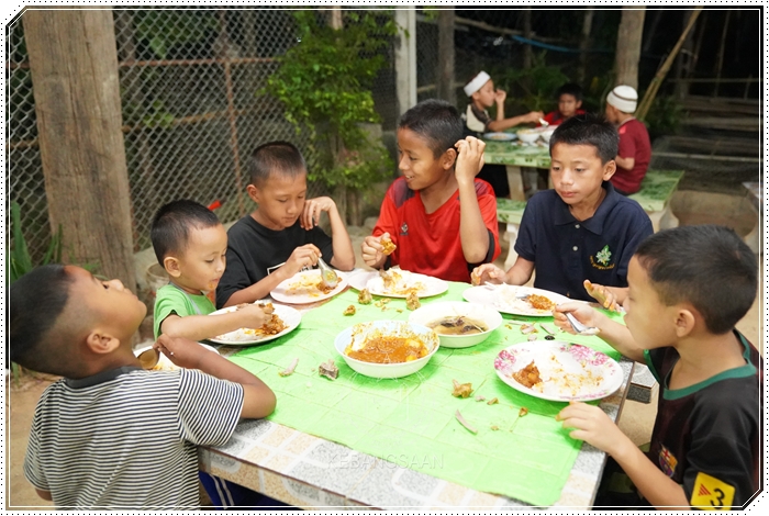 Anak-anak As-Siddiqin menjamu selera dengan hidangan makanan bersama keluarga mereka yang belum Islam.