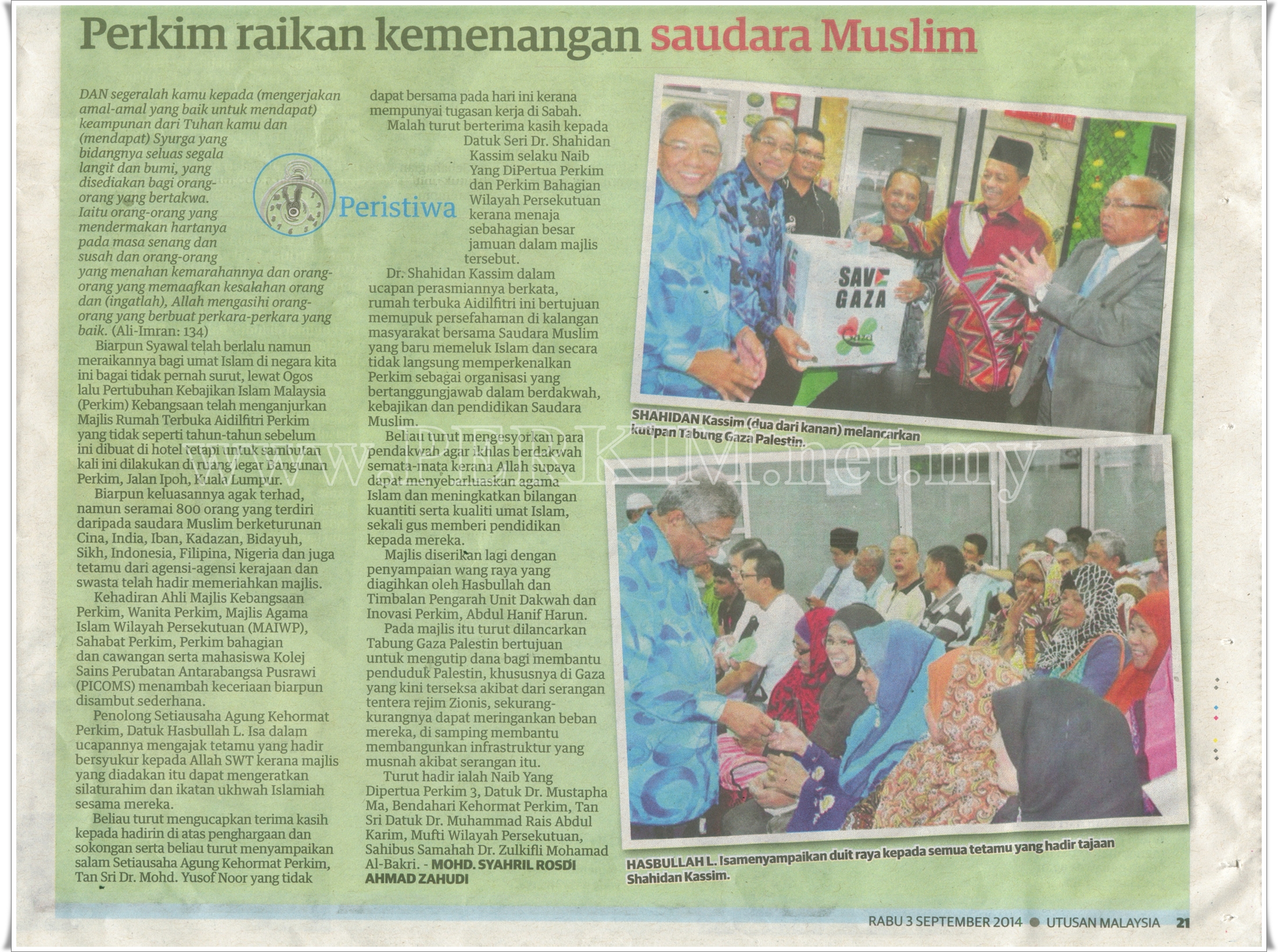 Home/Media/Keratan Akhbar/PERKIM Raikan Kemenangan Saudara Muslim Keratan Akhbar PERKIM Raikan Kemenangan Saudara Muslim Syahril Send an email 3 September 2014 389 Less than a minute Facebook Twitter Messenger Messenger WhatsApp Telegram Share via Email Tajuk: PERKIM Raikan Kemenangan Saudara Muslim Akhbar: Utusan Malaysia Tarikh: 3 September 2014 (Rabu) Oleh: MOHD. SYAHRIL ROSDI AHMAD ZAHUDI Syahril Send an email 3 September 2014 389 Less than a minute Facebook Twitter Messenger Messenger WhatsApp Telegram Share via Email Share Facebook Twitter Messenger Messenger WhatsApp Telegram Share via Email Print