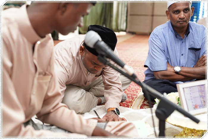 Dengan sekali lafaz, saudara baharu berbangsa India, Muhammad Rahman Abdullah, 18 telah sah menjadi suami kepada pasangan pengantin perempuan yang juga mualaf berbangsa India, Anisha Abdullah, 23.