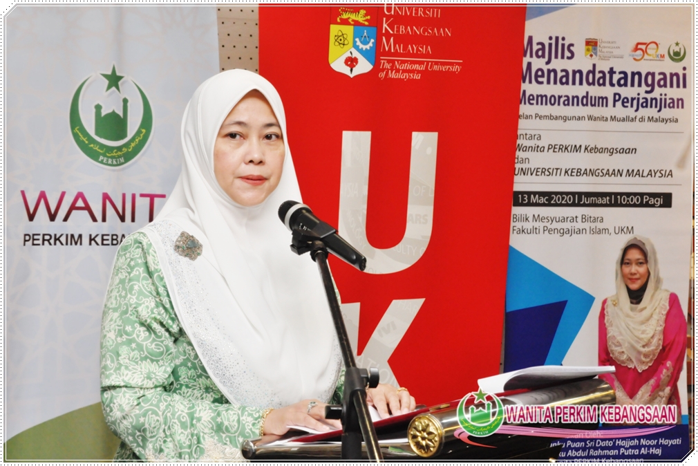 “Alhamdulillah saya percaya UKM sebagai satu Institut Pengajian Tinggi (IPT) yang tersohor di Malaysia dapat memberikan sumber yang sahih dan impak yang lebih tinggi sehingga mencapai hasrat dan tujuan Pelan Pembangunan Wanita Mualaf secara strategik,” jelas beliau.