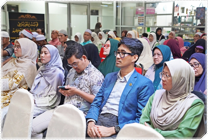 Hadirin terdiri daripada saudara baharu mendengar ucapan yang disampaikan.