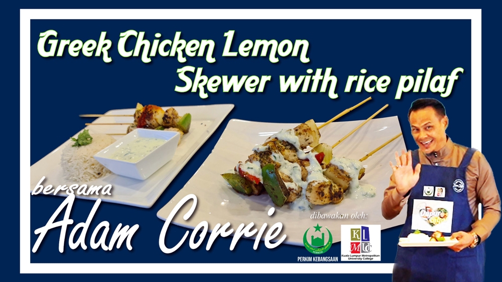Pada kali ini, kita bersama Chef Arieffudin Abdul Khalid selaku Senior Chef Lecturer KLMUC dan Selebriti Hijrah iaitu Saudara Adam Corrie akan menyediakan hidangan Greek Lemon Chicken Skewer.