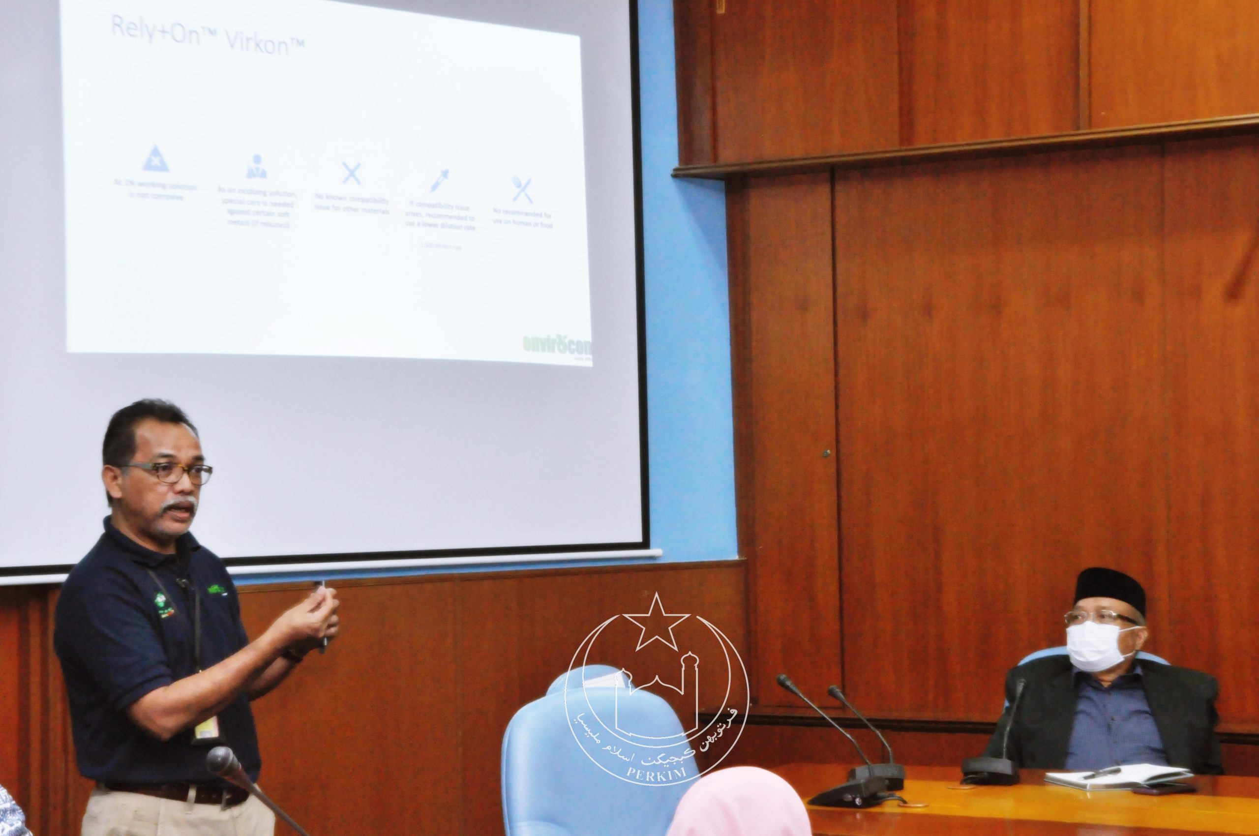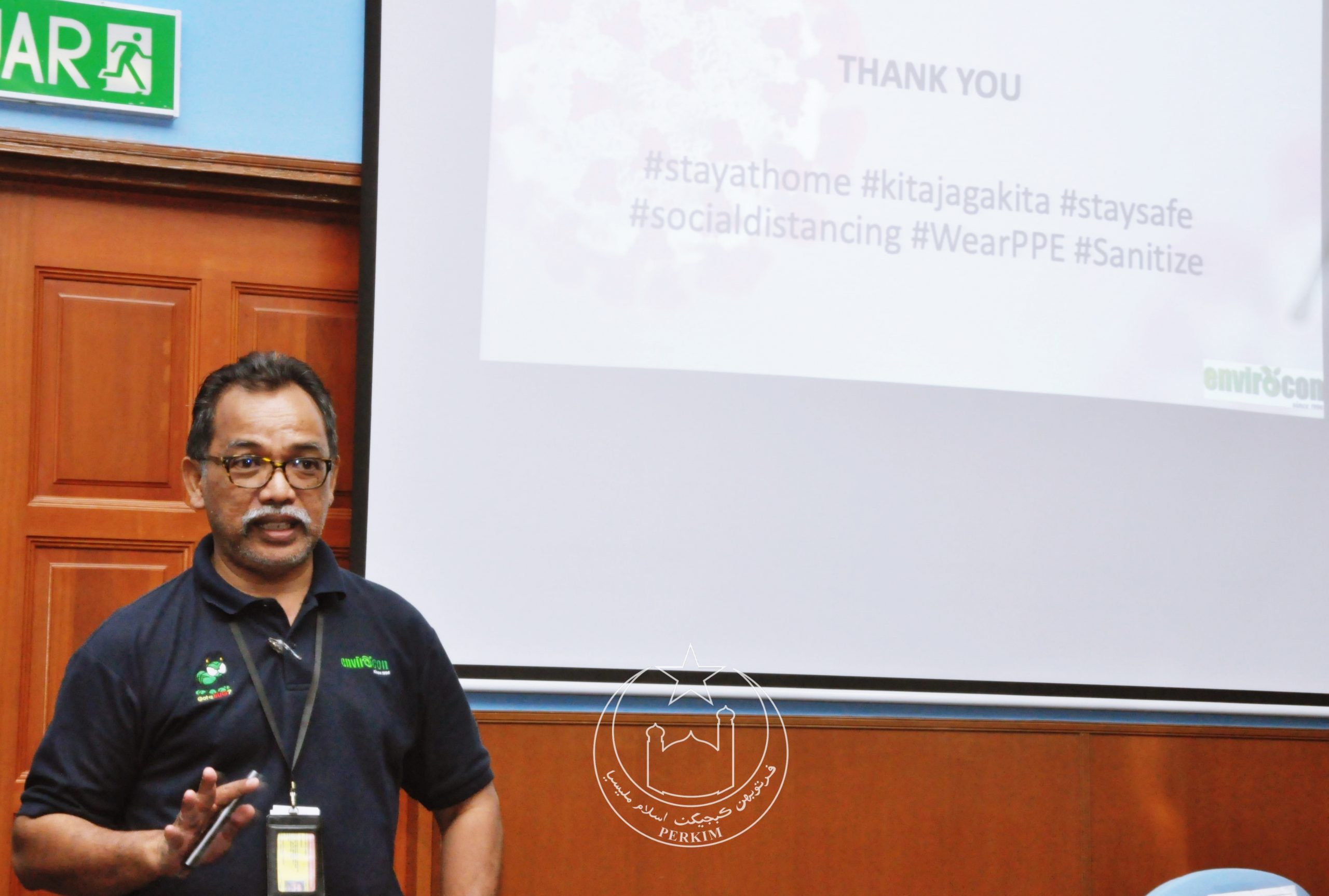 Taklimat tersebut telah disampaikan oleh Encik Nor Hisham Badri dari syarikat Envirocon Pest Management bagi menerangkan proses sanitasi dengan menggunakan bahan-bahan penyah kuman mengikut Prosedur Operasi Standard (SOP) yang telah ditetapkan oleh Kementerian Kesihatan Malaysia (KKM).