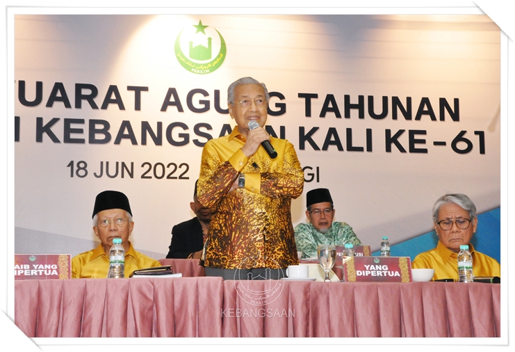 “Saya berasa amat bangga kerana setelah dua tahun kita tidak dapat berjumpa sebegini akibat COVID-19, kali ini kita berasa selesa bahawa kita boleh mengadakan perjumpaan secara langsung bagi Mesyuarat Agung Tahunan PERKIM Kali-61,” ucap Yang Dipertua PERKIM, Tun Dr Mahathir Mohamad.