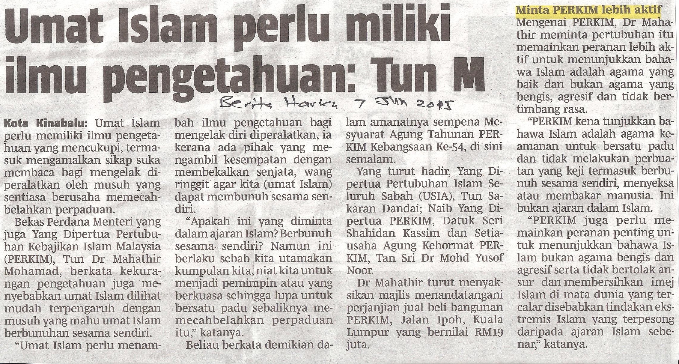 Home/Media/Keratan Akhbar/Umat Islam Perlu Miliki Ilmu Pengetahuan : Tun M Keratan Akhbar Umat Islam Perlu Miliki Ilmu Pengetahuan : Tun M Syahril Send an email 7 June 2015 419 Less than a minute Facebook Twitter Messenger Messenger WhatsApp Telegram Share via Email Tajuk: Umat Islam Perlu Miliki Ilmu Pengetahuan : Tun M Akhbar: Berita Harian Tarikh: 7 Jun 2015 (Ahad) Syahril Send an email 7 June 2015 419 Less than a minute Facebook Twitter Messenger Messenger WhatsApp Telegram Share via Email Share Facebook Twitter Messenger Messenger WhatsApp Telegram Share via Email Print