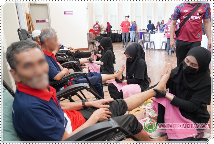Pelajar Kolej Vokasional ERT Setapak menyediakan perkhidmatan refleksologi percuma kepada warga emas.
