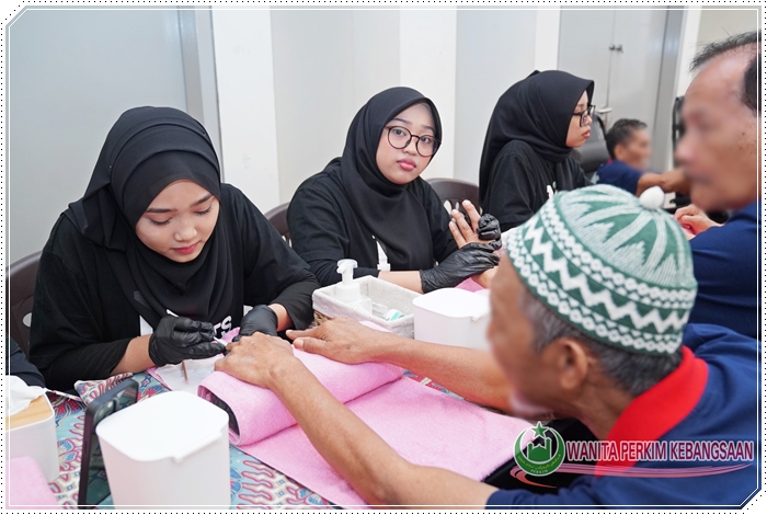 Warga emas berkesempatan mendapatkan khidmat rawatan kuku tangan percuma dari pelajar Kolej Vokasional ERT Setapak.